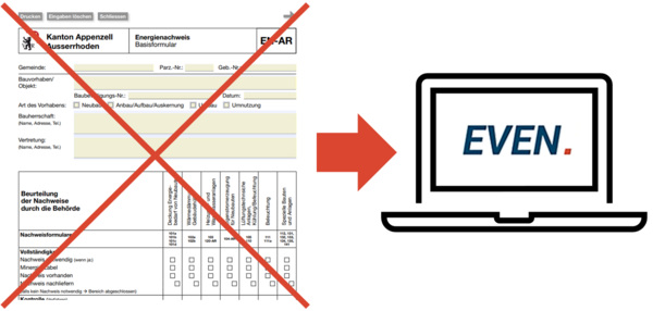 Ab dem 1. Januar 2026 sind alle Energienachweise ausschliesslich über die schweizweite Plattform zum Elektronischen Vollzug Energetischer Nachweise (EVEN) zu erfassen bzw. einzureichen. Nachweise anhand der bisherigen PDF-Formulare werden ab diesem Datum nicht mehr akzeptiert.