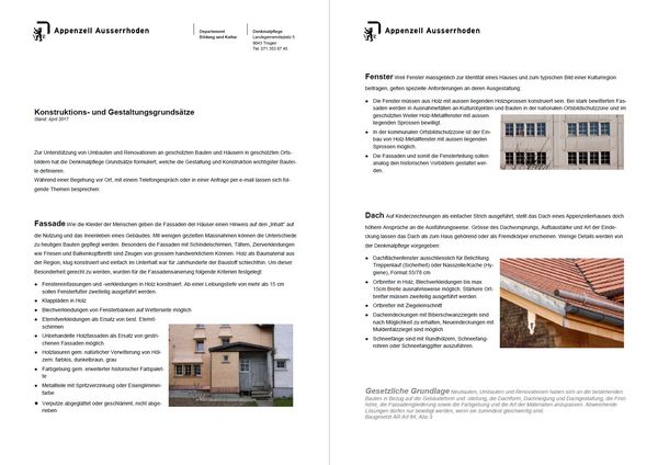 Hier finden Sie die Leitlinien der Denkmalpflege für Renovation und Unterhalt an und in geschützten Gebäuden und Ortsbildern.