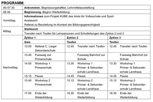 Die MACHBAR stellt das Projekt KUBE (Kompetenzorientiert unterrichten und beurteilen) ins Zentrum. Obligatorische ganztägige Weiterbildung für alle Lehrpersonen der Volksschule Appenzell Ausserrhoden.