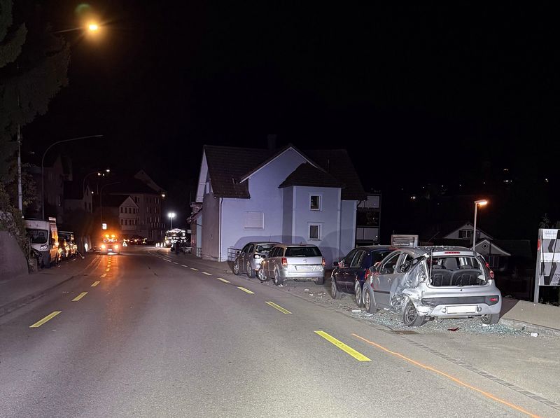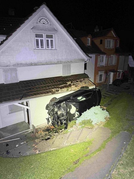 Um 02.40 Uhr fuhr ein 31-jähriger Mann mit seinem Personenwagen auf der Gossauerstrasse in Richtung Herisau-Dorf. Kurz nach dem Abzweiger Tobelackerstrasse fuhr er mit stark überhöhter Geschwindigkeit über den rechten Fahrbahnrand und touchierte einen korrekt parkierten Personenwagen. Dieser wurde durch die Wucht des Aufpralls in ein weiteres parkiertes Auto geschoben. Ohne sich um den Schaden zu kümmern, lenkte der Unfallverursacher seinen Personenwagen weiter. Nach der Liegenschaft Gossauerstrasse 105 überfuhr er das Trottoir und durchbrach einen Röhrenzaun. Danach flog er mit seinem Auto in den darunterliegenden Garten und landete schliesslich auf dem Dach eines Hausanbaues der Liegenschaft Gossauerstrasse 103. Der Lenker zog sich dabei leichte Verletzungen zu. Er wurde durch die Rettung ins Spital gebracht. Die ausgerückten Polizisten beurteilten den 31-jährigen Mann als fahrunfähig. Der Führerausweis wurde ihm auf der Stelle abgenommen. Am Verursacherfahrzeug und dem zuerst touchierten Auto entstand Totalschaden. Am zweiten parkierten Fahrzeug und dem Gebäude entstand ein Sachschaden von mehreren Zehntausend Franken. Die Feuerwehr Herisau wurde wegen auslaufenden Flüssigkeiten und zum Brandschutz aufgeboten. Sie rückte mit zwei Fahrzeugen und 9 Angehörigen der Feuerwehr aus. Für die Fahrzeugbergung wurde die Pikettgarage mit einem Kran aufgeboten. Die Strasse wurde nach dem Unfall durch ein Strassenreinigungsfahrzeug gesäubert.