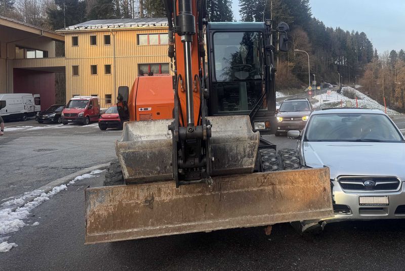 In Hundwil befuhr kurz vor 08.00 Uhr ein 29-jähriger Baumaschinenführer mit einem Radbagger den Sonderaukreisel. Zum selben Zeitpunkt fuhr ein 92-Jähriger mit seinem Auto von Hundwil kommend in den Kreisel und bemerkte den Radbagger zu spät. Daraufhin kam es zur seitlichen Kollision zwischen den beiden Fahrzeugen. Die Fahrzeugführer blieben unverletzt. Das Auto erlitt Totalschaden, beim Bagger entstand hingegen sehr geringer Sachschaden. Der Personenwagen wurde durch den Abschleppdienst abtransportiert.