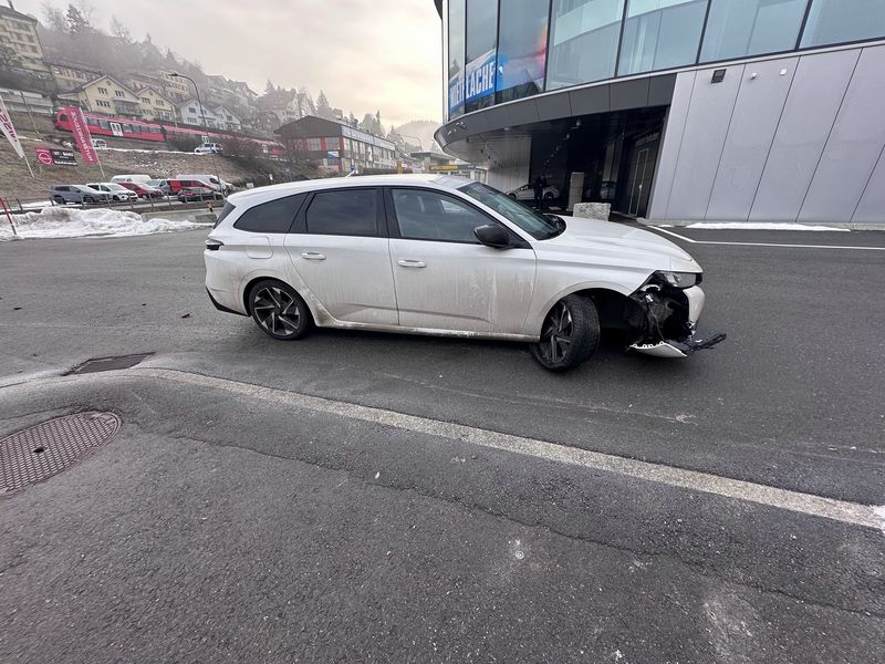 Um 09.00 Uhr fuhr ein, vorerst unbekannter, Mann mit dem Auto auf der Poststrasse an die Verzweigung zur Alpsteinstrasse. Bei der Verzweigung setzte er zurück, um korrekt einzuspuren. Beim Rückwärtsfahren kam es mit dem nachfolgenden Personenwagen zu einer Kollision. Nach einem kurzen Halt setzte er die Fahrt in Richtung St. Gallen fort. Im Bereich der Industriestrasse bog der Lenker nach links auf einen Vorplatz ab. Beim Abbiegen rutschte der Wagen in den Randstein und das rechte Vorderrad wurde massiv beschädigt. Anschliessend wurde das Fahrzeug stehen gelassen und der Fahrer entfernte sich vom Unfallort. Personen wurden nicht verletzt. Es entstand Sachschaden von mehreren Tausend Franken.